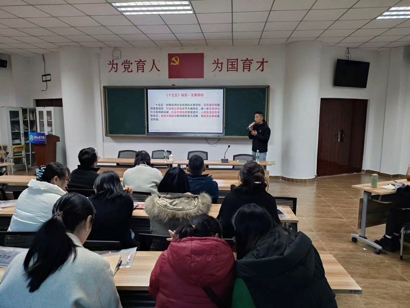 会上,龚航同志首先介绍了二十届四中全会的会议概要,带领全体党员共同学习“十五五” 时期 “六个坚持” 原则及 “十五五” 规划主要目标,引导大家深入领会“到二〇三五年人均国内生产总值达到中等发达国家水平”的量化内涵。随后,龚航同志领学《中共中央关于制定国民经济和社会发展第十五个五年规划的建议》,重点围绕教育领域提出要求,强调学院需积极响应国家号召,着力办好人民满意的教育,打造契合产业发展需求的特色教育。