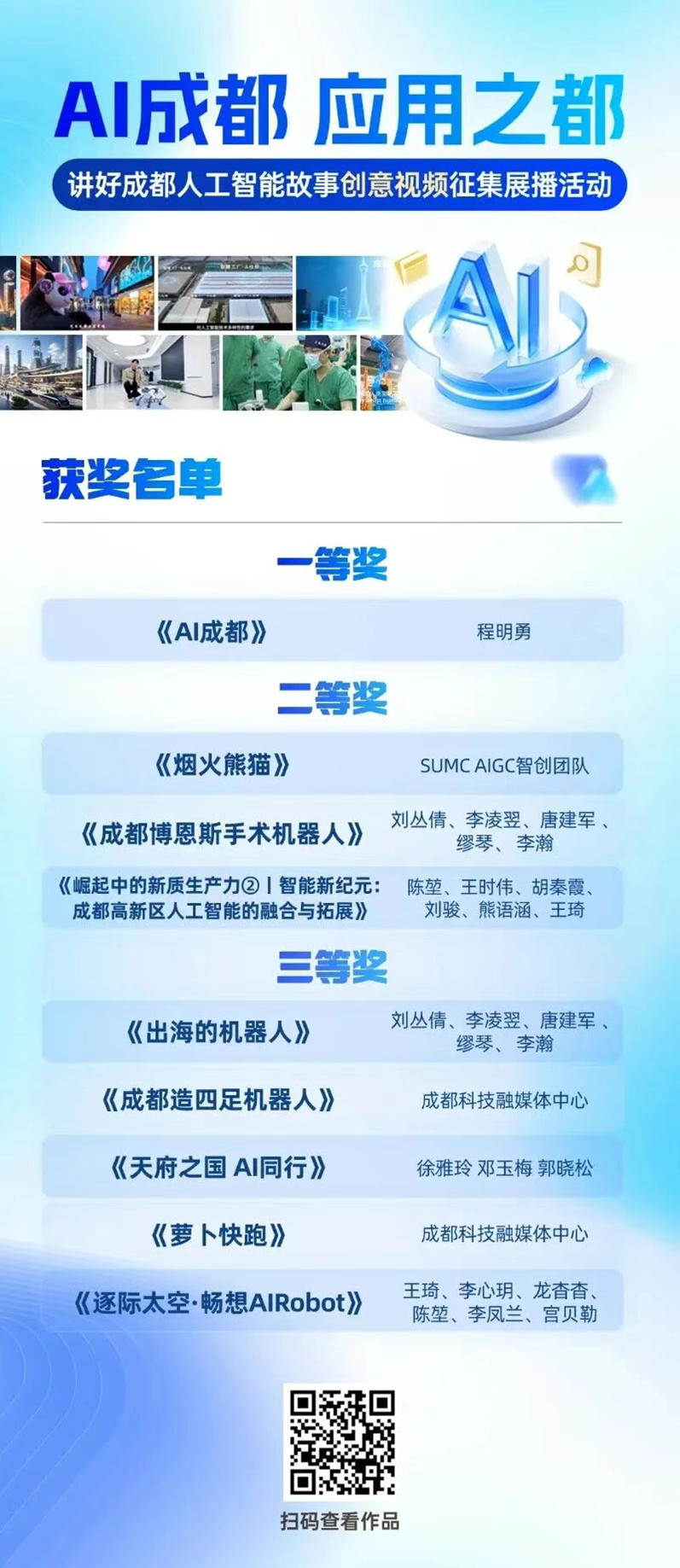 本次“AI成都·应用之都”人工智能故事创意视频征集活动,系成都市首次聚焦“全AI生成、非实景拍摄”的高规格专业赛事,面向全国高校、企事业单位、人工智能企业及专业媒体机构等广泛征集作品,吸引了省内外上百家头部传媒机构、科技企业、地方政府融媒体中心组队参赛,要求各参赛主体不能进行实景拍摄,均以顶尖AI技术与创意能力投入创作。最终从上百家团队中评出一个1等奖,2个二等奖和5个三等奖,赛事奖项主要集中于专业传媒机构、人工智能企业、地方政府融媒体中心等;而我校作为全省仅有的两所获奖高校之一。