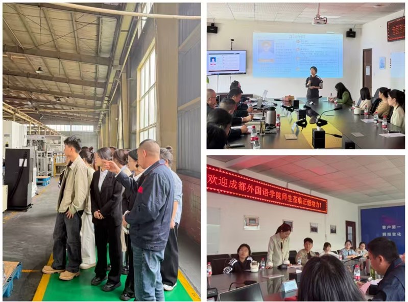 活动伊始,企业负责人陪同师生深入生产一线,参观生产线、产品展示区及办公区域,详解企业运营、产品体系、市场布局及行业态势,让同学们直观感受企业实力与行业前景。随后,师生观看企业宣传视频,全面了解企业发展历程、企业文化及海外业务方向,明晰其对国际化复合型人才的需求。