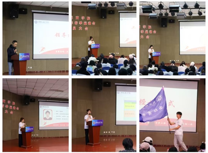 大会以啦啦操表演拉开序幕。表演结束后,副院长龚航上台发言,他代表学院党政班子对全体运动员及工作人员的付出表示感谢,寄语全体运动员“赛出水平、赛出风格,驰骋赛场”,鼓励大家在运动会中敢于拼搏,勇于突破,用实际行动诠释青春风采。随后,体育部部长余润作工作汇报,总结去年运动会取得的成果,介绍本届运动会的筹备进展。紧接着,学生会主席赵坤美逐项明确各部门在运动会期间的具体职责。随后,运动员代表们上台亮相,袁雅睿同学进行运动员代表发言,在她的发言中表达了奋勇争先、为院争光的决心。在热烈的气氛中,张诗淼老师向体育部部长王晶授旗,接过旗帜后,王晶带领全体人员庄严宣誓。最后,由罗智双和李雨欣演唱歌曲《冲动》,现场气氛热烈,掌声不断。
