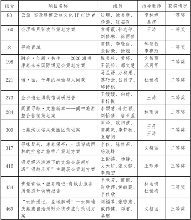 【喜报】我院学子荣获2025年第十九届全国高校商业精英挑战赛文旅与会展创新创业实践竞赛四川赛区一、二、三等奖