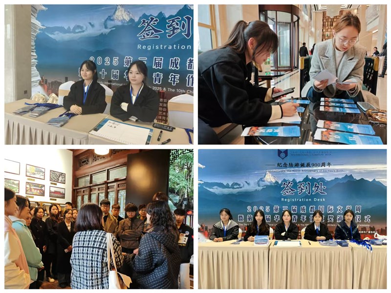 据悉,本届文学周活动是由成都市文学艺术界联合会、崇州市人民政府联合主办,以“传承天府文韵,绽放蓉城之美”为主题,汇聚中外作家、学者的大型文化活动。我院学子已连续三年与成都电视台合作深度参与成都国际文学周志愿服务,同学们在服务中近距离感受文学魅力,拓宽国际视野,提升了沟通协调与团队协作能力,在实践中践行志愿精神,传递青春正能量。