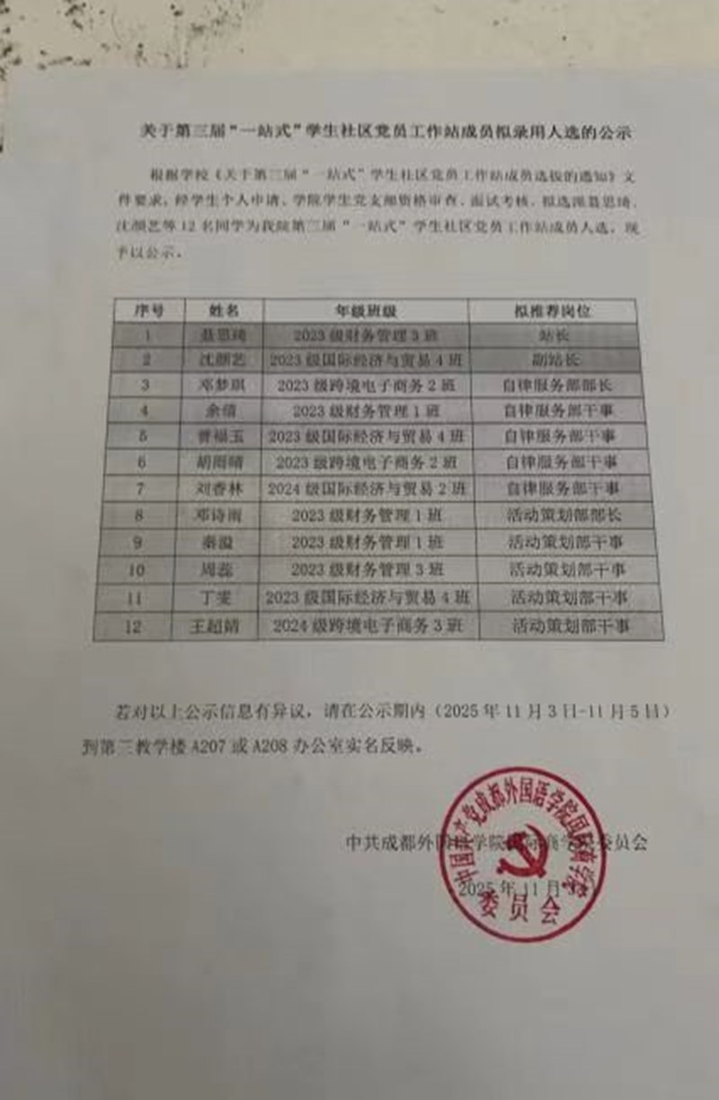 此次评选不仅为党员工作站注入了新鲜血液,也为学生搭建了服务社区、锤炼能力的实践平台,助力“一站式”学生社区建设提质增效。