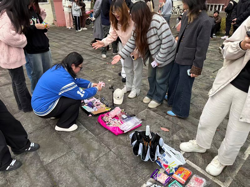 此次活动并非简单的“跳蚤市场”,而是一次由学生自主策划、运营管理的商业实践。活动当天,博学广场人头攒动,热闹非凡。数十个由学生自主经营的摊位依次排开,商品琳琅满目,从教材、笔记、考研资料等学习“利器”,到服饰、玩偶、化妆品等生活用品,再到耳机、键盘、台灯等电子设备,一应俱全。叫卖声、讨价还价声、欢声笑语交织在一起,构成了一幅充满活力的校园市集图景。